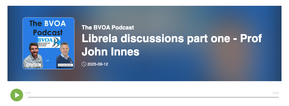 Hosts, Simon Ratcliffe and Duncan Barnes, chatted to John about his career in veterinary orthopaedics and also about a paper he recently published reporting a randomised clinical trial comparing the efficacy of bedinvetmab (Librela) to meloxicam for the management of canine osteoarthritis. The trial was completed with eight primary care practices around the NorthWest and was published earlier this year in the open-access, peer-reviewed journal, Frontiers in Veterinary Science.