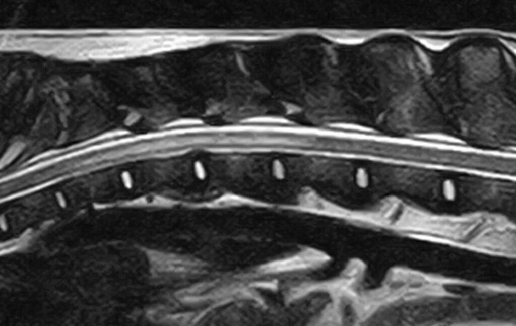 The results of these tests are usually normal in animals with ischaemic myelopathy although MRI can often show some compatible changes. Since you are relying on an absence of findings on imaging to make a diagnosis it is essential that the correct portion of the spinal cord is checked. Imaging studies may occasionally detect swelling of the spinal cord.