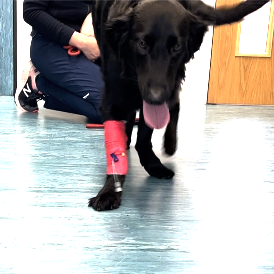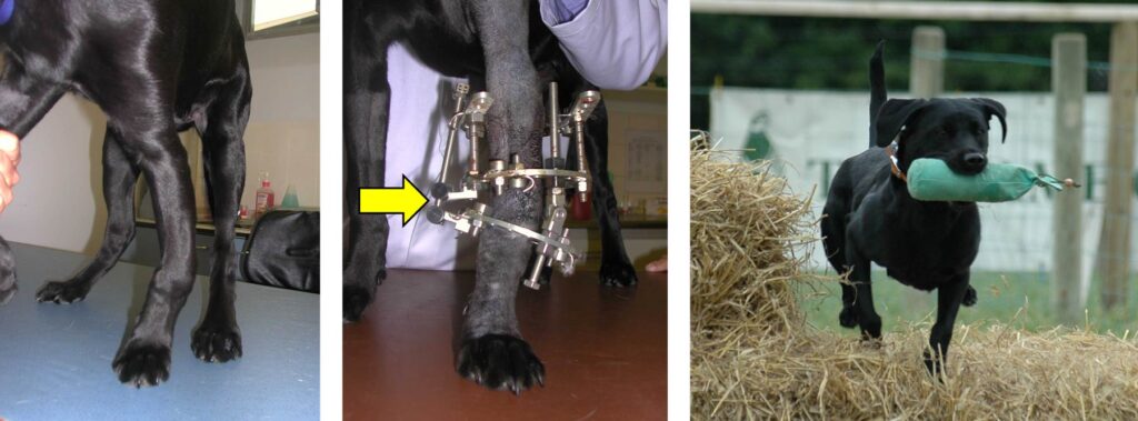The pictures here are of a Flat-Coat Retriever who had growth deformities in both legs.