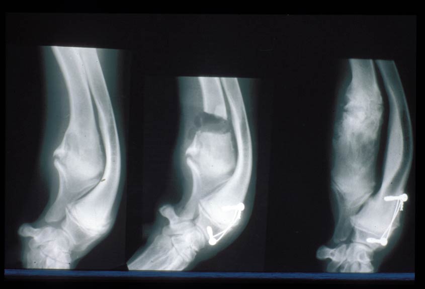 - “Dynamic” ulna osteotomies/ ostectomy. In some cases, a cut through one of the two of bones in the forelimb between the elbow and the wrist can be enough to improve the congruity in the elbow joint.