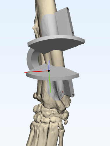 - Corrective osteotomies. It might be necessary to reduce the bends and/ or twists in the bone to improve limb function. This is generally done by cutting the effected bones, adjusting their shape, and fixing them in place while they heal. We might advise having patient-specific custom surgical guides made. We would usually aim to stabilise the bones with internal implants (e.g. bone plates) to make the post-operative care easier.