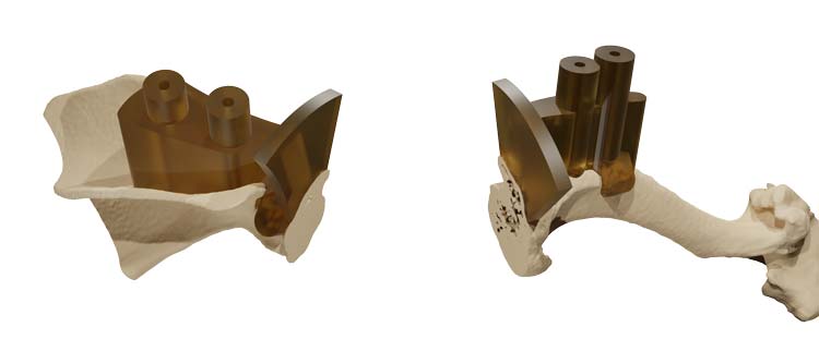 Osteoarthritis of the shoulder joint can be commonly noted on X-rays of older dogs. However, the majority of dogs seem to cope well with mild osteoarthritis. Occasionally shoulder osteoarthritis is associated with persistent pain and medication may be required. If this is not sufficient, fusion (arthrodesis) of the shoulder can be a helpful procedure. Arthrodesis of the shoulder needs careful planning and 3D modelling of the bones is very useful to allow for accurate cutting of bones and precise contouring of bone plates prior to surgery.